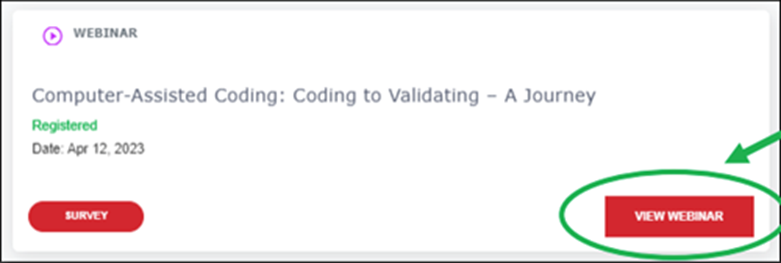 - After identifying your webinar in “My Registration,” select the “View Webinar” button.