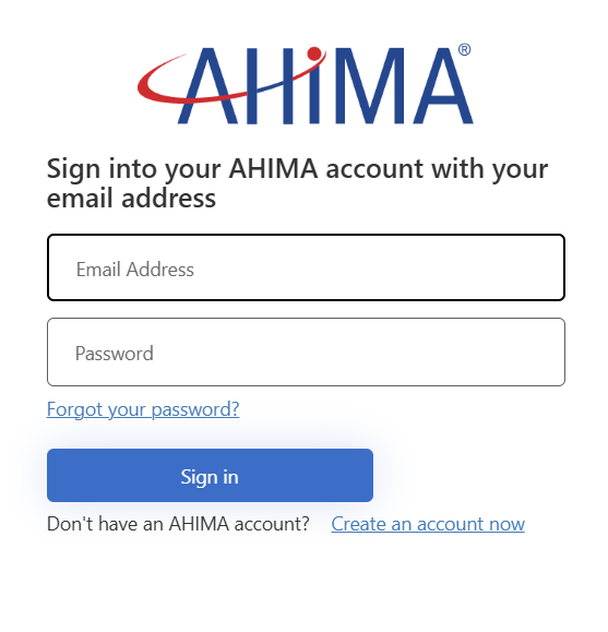 - Log into MyAHIMA with your AHIMA credentials.