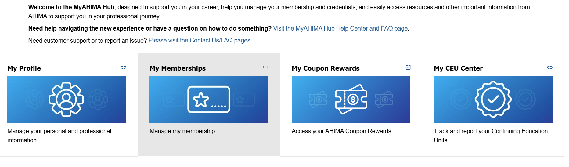 - Select “My CEU Center” in your MyAHIMA Hub account.