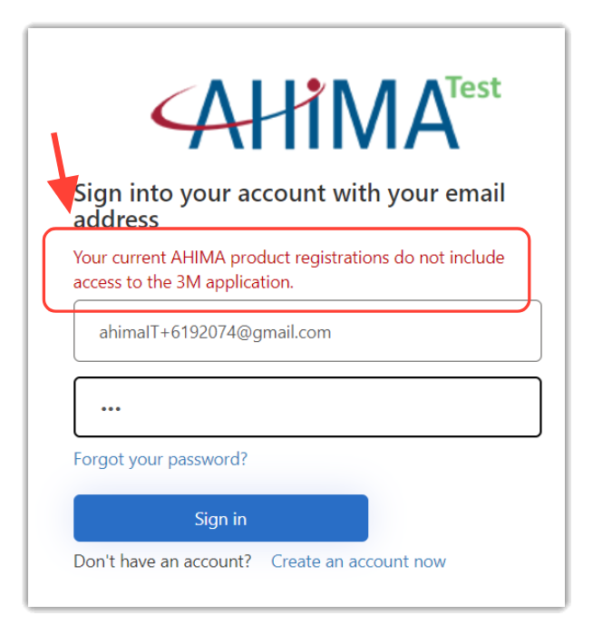 I get the following error when trying to log into the Solventum application: "Your current AHIMA product registrations do not include access to the 3M application".