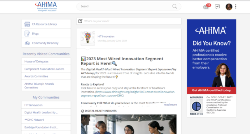 - On the AHIMA home page, click the Access button located in the upper toolbar: