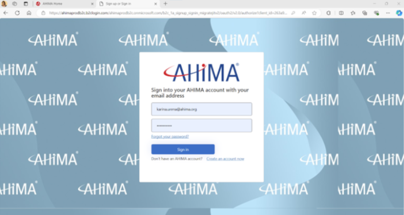 - Enter in your AHIMA login information and click the “Sign in” button: