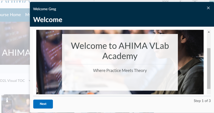 1. Access your VLab course via your AHIMA Learning Center page.
